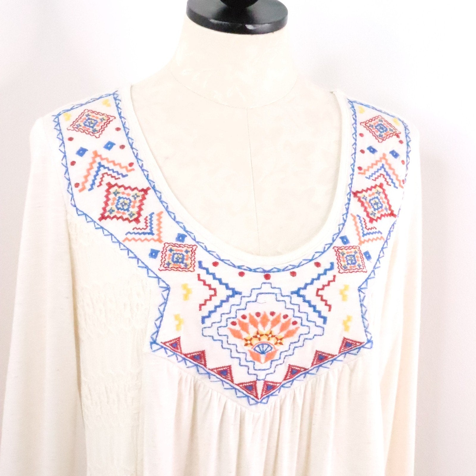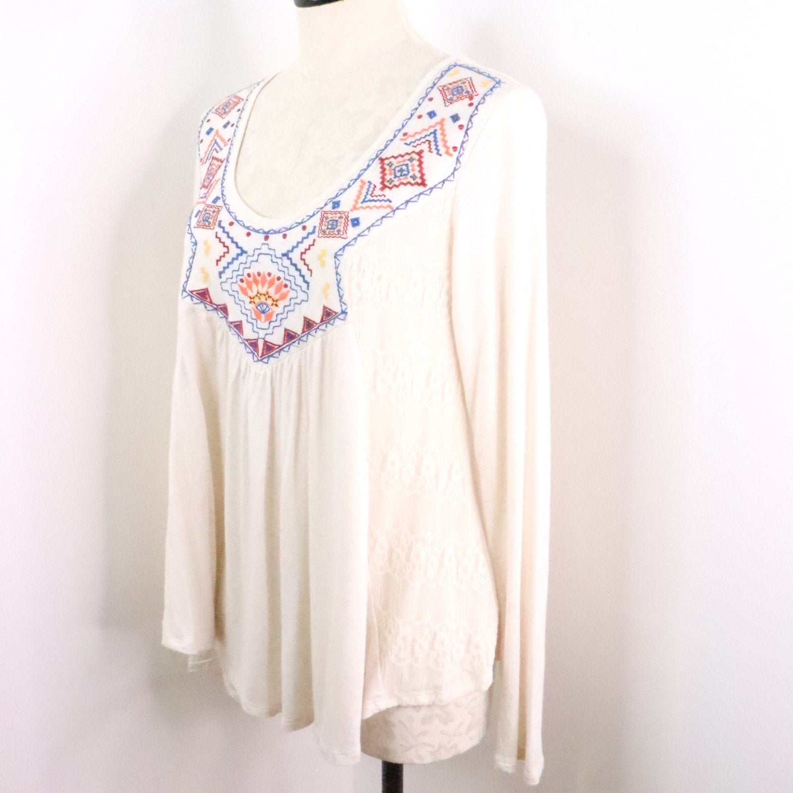 Arizona Jeans Co Women’s / Juniors L Boho Tribal Embroidered Stretch Top