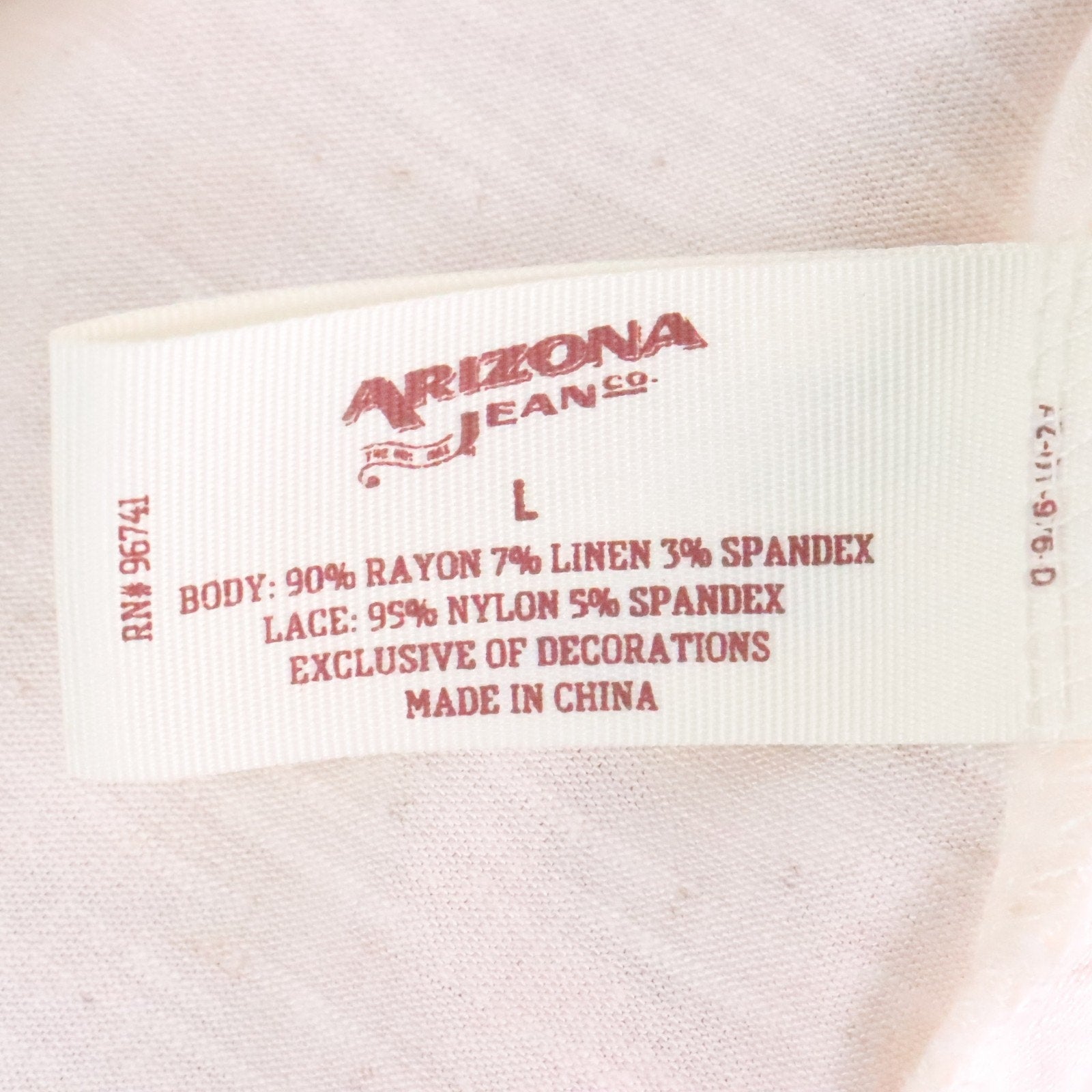 This Arizona Jeans Co boho embroidered top blends effortless comfort with free-spirited style. Crafted from a soft, lightweight stretch fabric, it features colorful tribal-inspired embroidery, delicate lace side panels, and a relaxed silhouette with a flattering high-low hem. An easy, breathable piece perfect for casual days, festival outfits, or warm-weather layering.